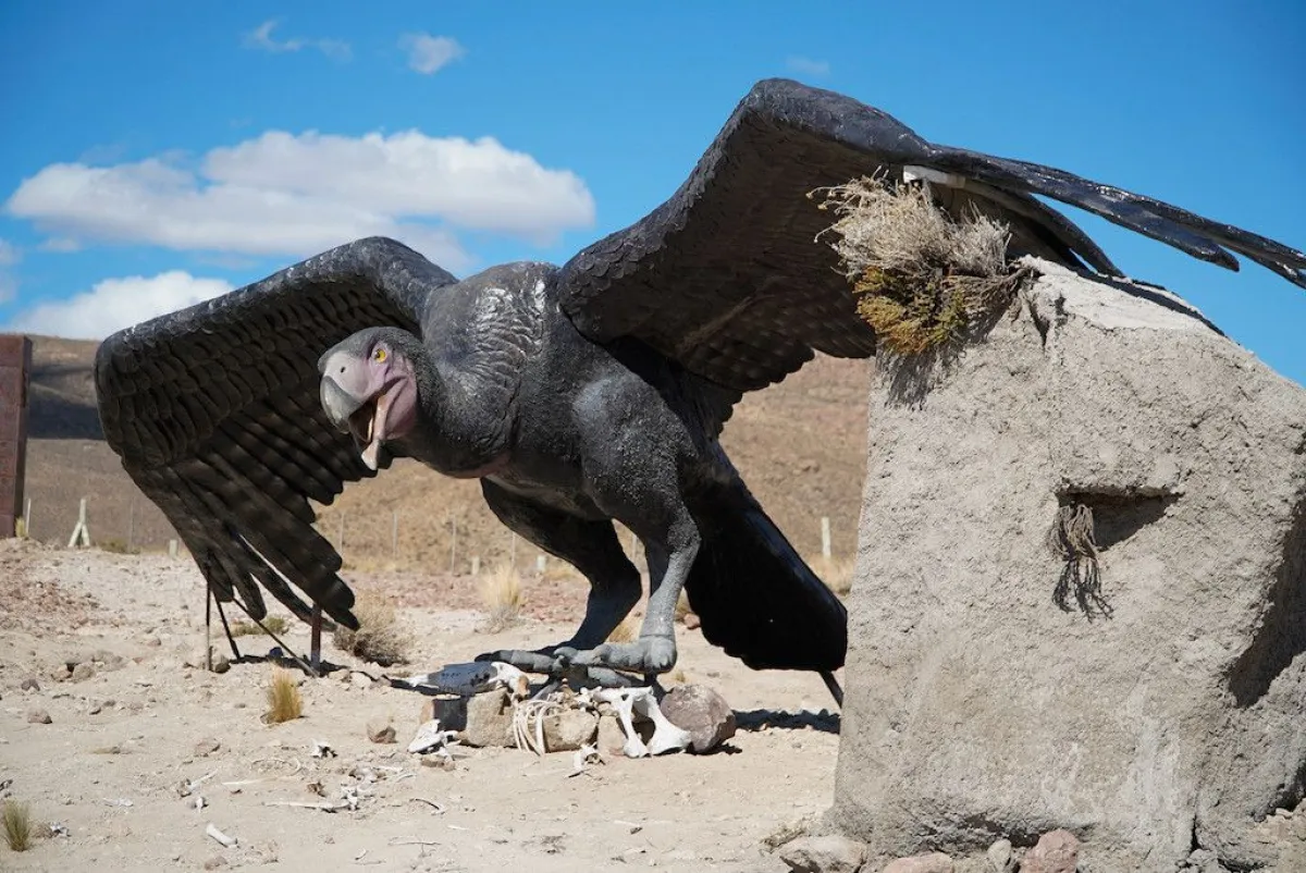 Entre las recreaciones más impactantes se destaca el Kelenken guillermoi, el ave fororrácida más grande conocida, que alcanzaba casi tres metros de altura y fue uno de los principales depredadores de las antiguas sabanas sudamericanas. Este ejemplar fue descubierto por el paleontólogo Guillermo Aguirrezabala y hoy se convierte en una de las figuras emblemáticas del parque.