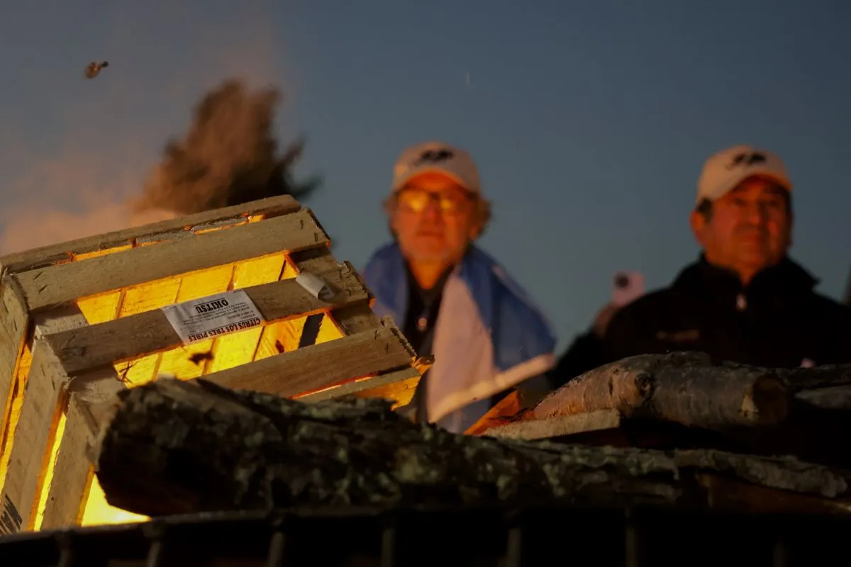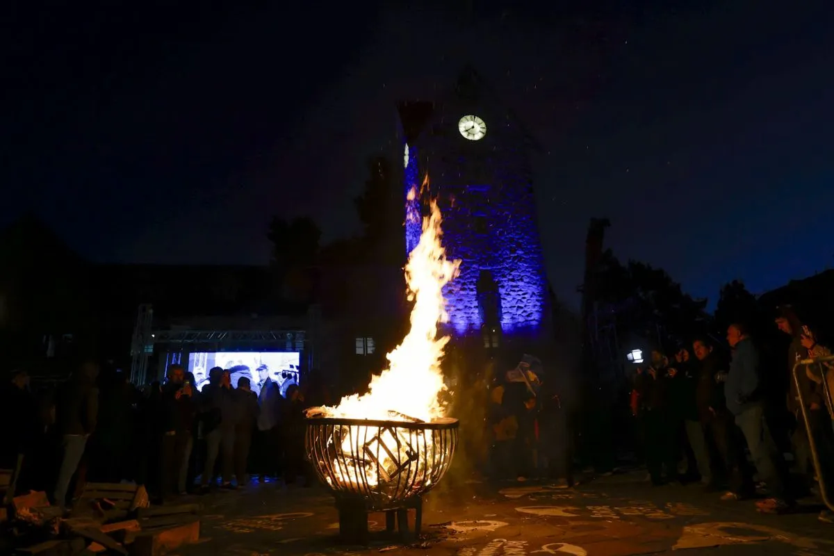 A las 20 en punto se vivió uno de los momentos más emotivos. Los veteranos encendieron el fuego que los acompañará durante toda la noche, símbolo de la memoria permanente. La llama fue iniciada por Rubén Pablos y, cuando comenzó a elevarse, el silencio dio paso a un cerrado aplauso.
