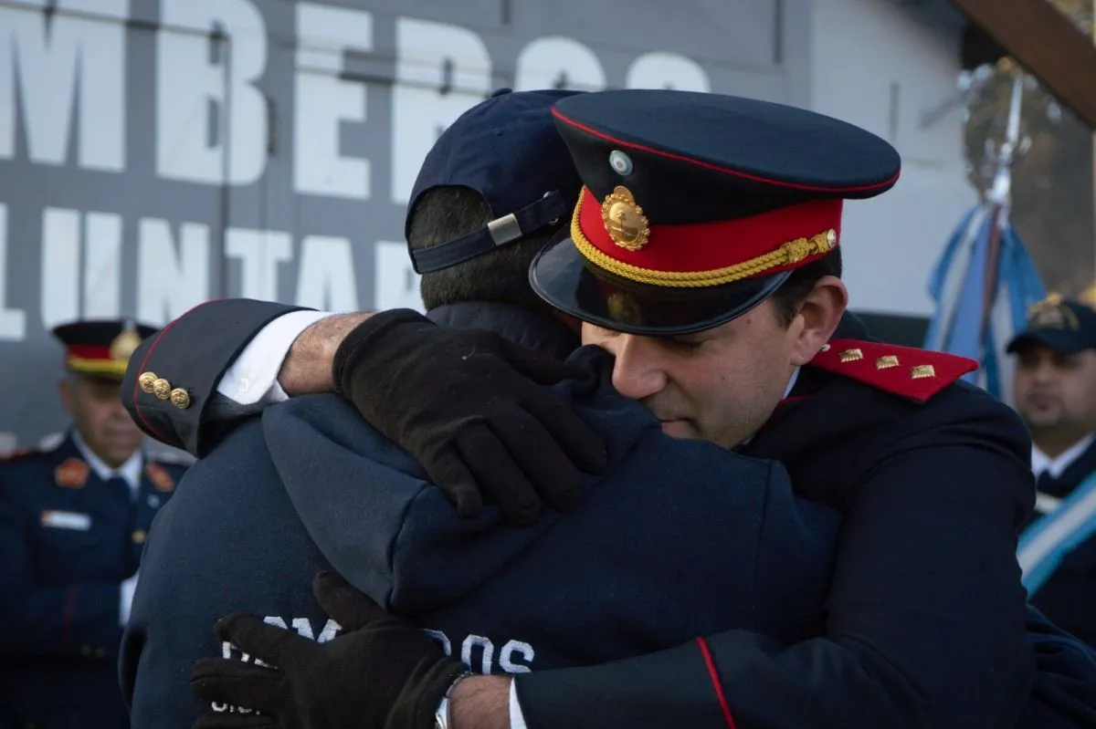 En ese marco, el secretario de Protección Ciudadana, Carlos Madjinca, hizo entrega de una placa conmemorativa en un momento especialmente emotivo, donde destacó la labor de los bomberos voluntarios, subrayando el compromiso permanente que implica una tarea que se realiza las 24 horas del día, los siete días de la semana.