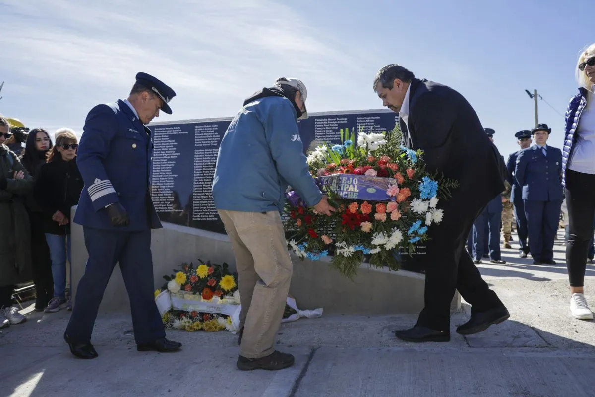 Uno de los momentos más emotivos fue el minuto de silencio en memoria de los caídos en el conflicto bélico, seguido de la colocación de una ofrenda floral dedicada a “los que no volvieron”, en el mural donde se encuentran los nombres de todos los jóvenes que murieron en la guerra.