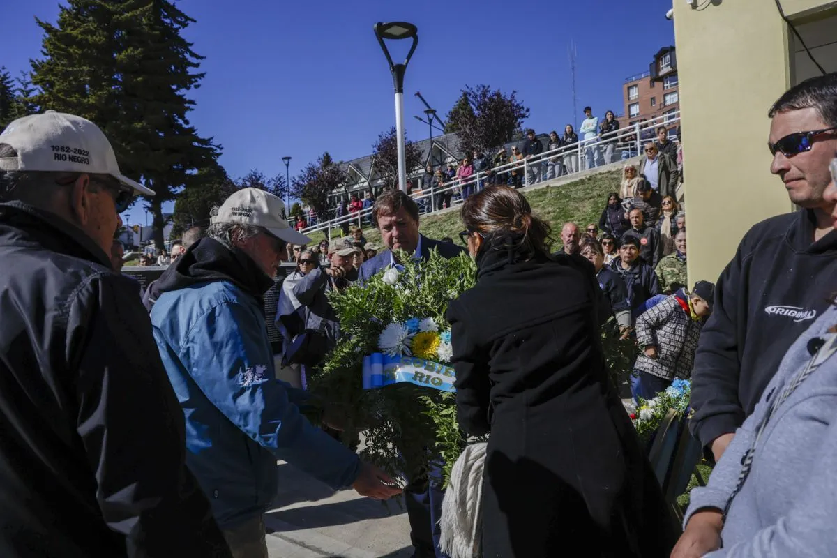 Por su parte, Rubén Pablos, director de Veteranos de Malvinas de Río Negro, recordó a los soldados de la provincia: “Hay cinco soldados caídos en la guerra que son de Río Negro y hay dos familias asentadas en Bariloche de otros compatriotas caídos en combate. Nosotros no queremos otra guerra, no queremos que nos incluyan en una guerra que no es nuestra; seguiremos luchando por la soberanía de las Malvinas de forma pacífica”.