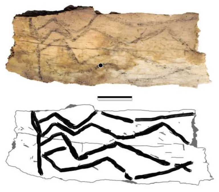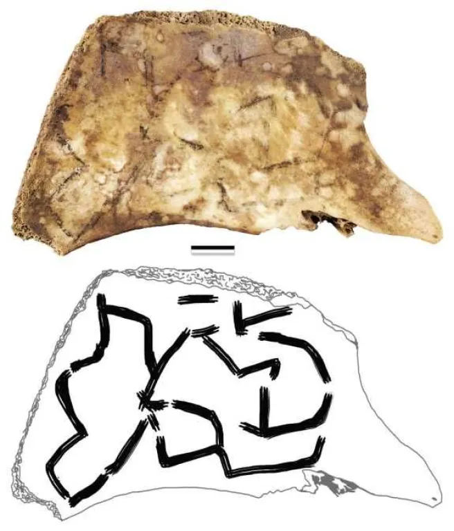 El que llamaron “fragmento A” corresponde a un ilion derecho de guanaco de aproximadamente 4,5 cm de alto por 6,5 cm ancho y de entre 2 a 5 mm de espesor, que “presenta un motivo de líneas quebradas en múltiples direcciones dibujadas en color negro que ocupan toda la superficie disponible”. En tanto, el B “corresponde a un fragmento medial de costilla de guanaco de aproximadamente 2 cm de alto por 5 cm ancho y de entre 1,5 a 4 mm de espesor”. En su caso, “presenta un motivo de líneas quebradas paralelas dibujadas en color negro, cuya disposición y extensión acompañan el eje mayor de la costilla”. El “material colorante” que se utilizó fue carbón.