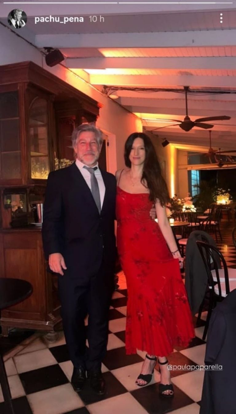 La foto apareció en las historias de Instagram del actor y rápidamente llamó la atención. En la imagen se los ve abrazados, sonrientes y en un contexto festivo. Ella luce un vestido rojo, mientras que él aparece elegante con traje, dejando entrever el buen momento personal que atraviesa.