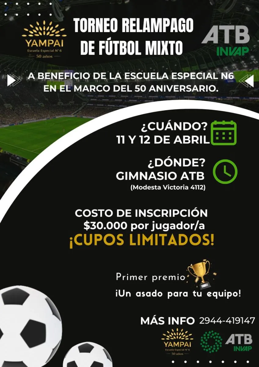 El primer gran evento del ciclo festivo de la Yampai (que en mapudungun significa "resplandor") será este fin de semana y contempla una feria de emprendedores y un torneo de fútbol mixto en las canchas de ATB Invap (Modesta Victoria 4112), con actividad el sábado y el domingo. Las inscripciones están abiertas y la convocatoria es amplia, más allá de la comunidad educativa.