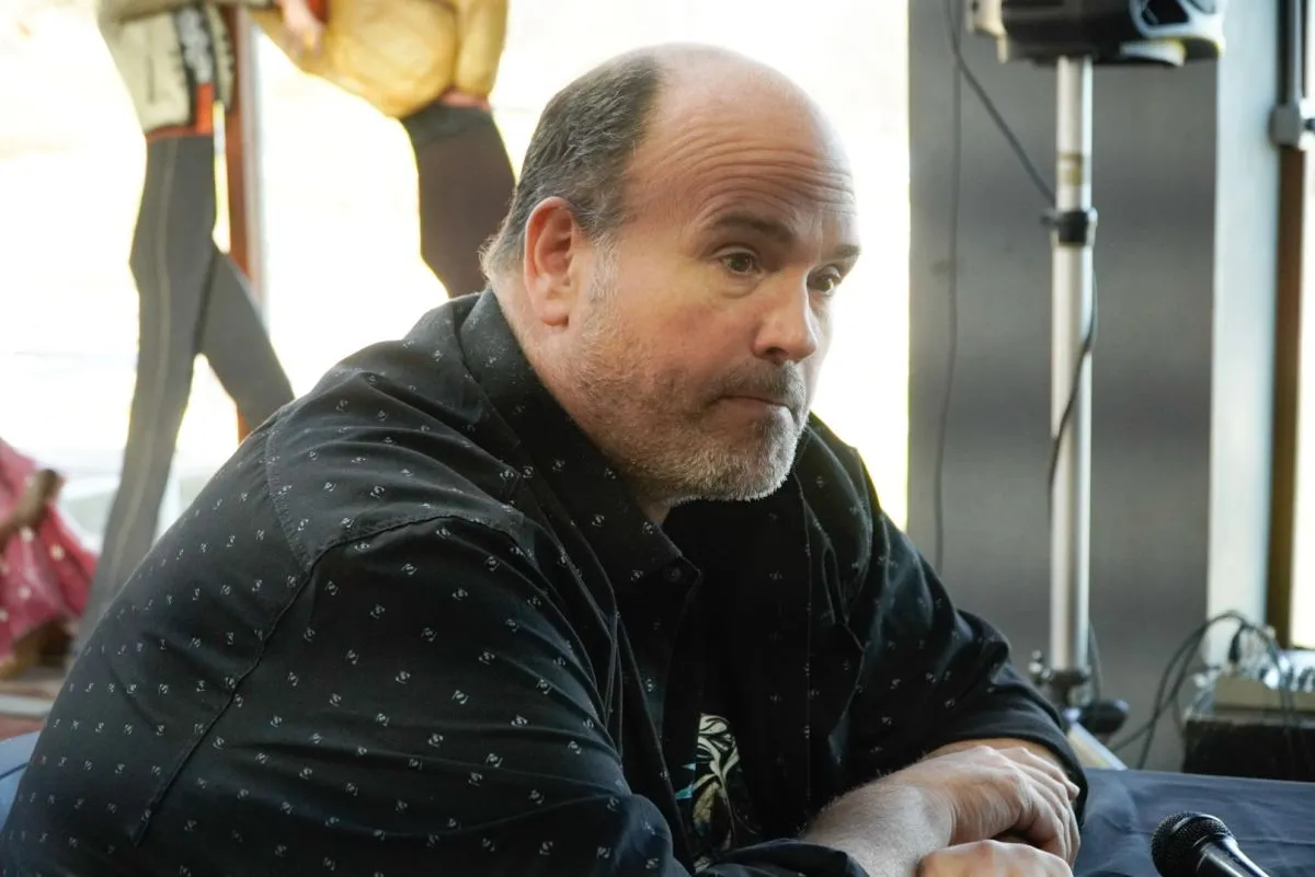 Gabriel Bertino, que le dedicó un poema a la ciudad, durante la presentación de su último libro de cuentos, en el Puerto San Carlos (foto: Facundo Pardo).
