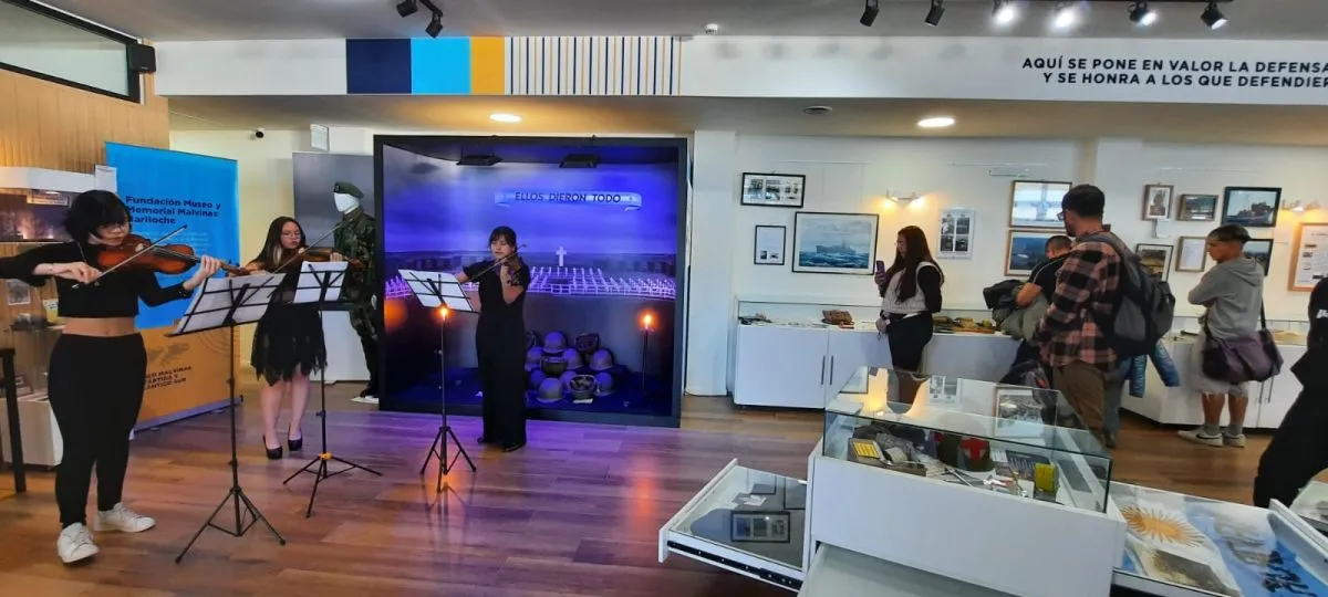 Un trío de violines de la Camerata Juvenil Municipal Bariloche sorprendió a quienes, en el momento en el que se presentaron en ese espacio, estaban en el Museo Malvinas, Antártida y Atlántico Sur, con cuatro interpretaciones que brindaron un agradable acompañamiento sonoro.