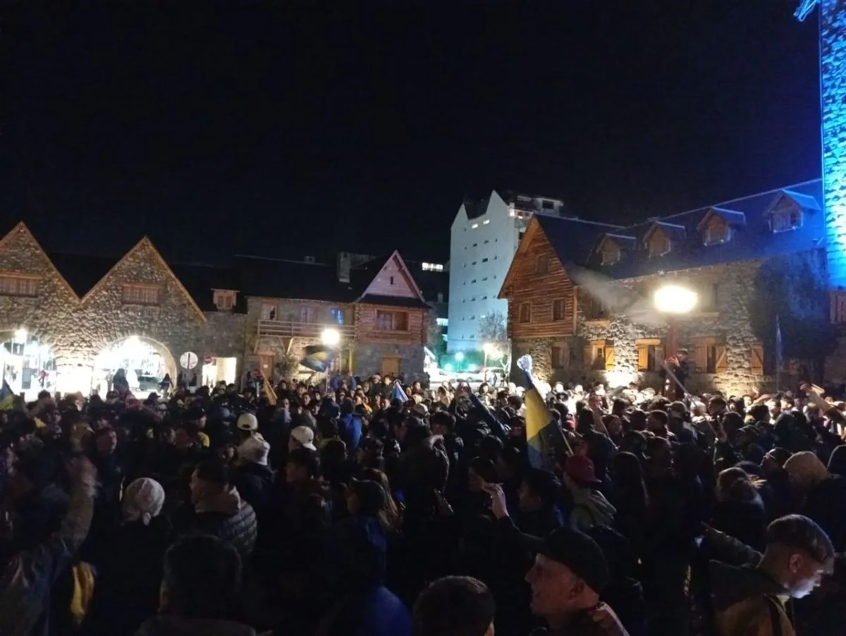 Fue en el Centro Cívico donde se llenó de hinchas, dejando la postal de una noche barilochense donde estalló el festejo con banderas, gorros y la alegría de festejar el triunfo ante el eterno rival.