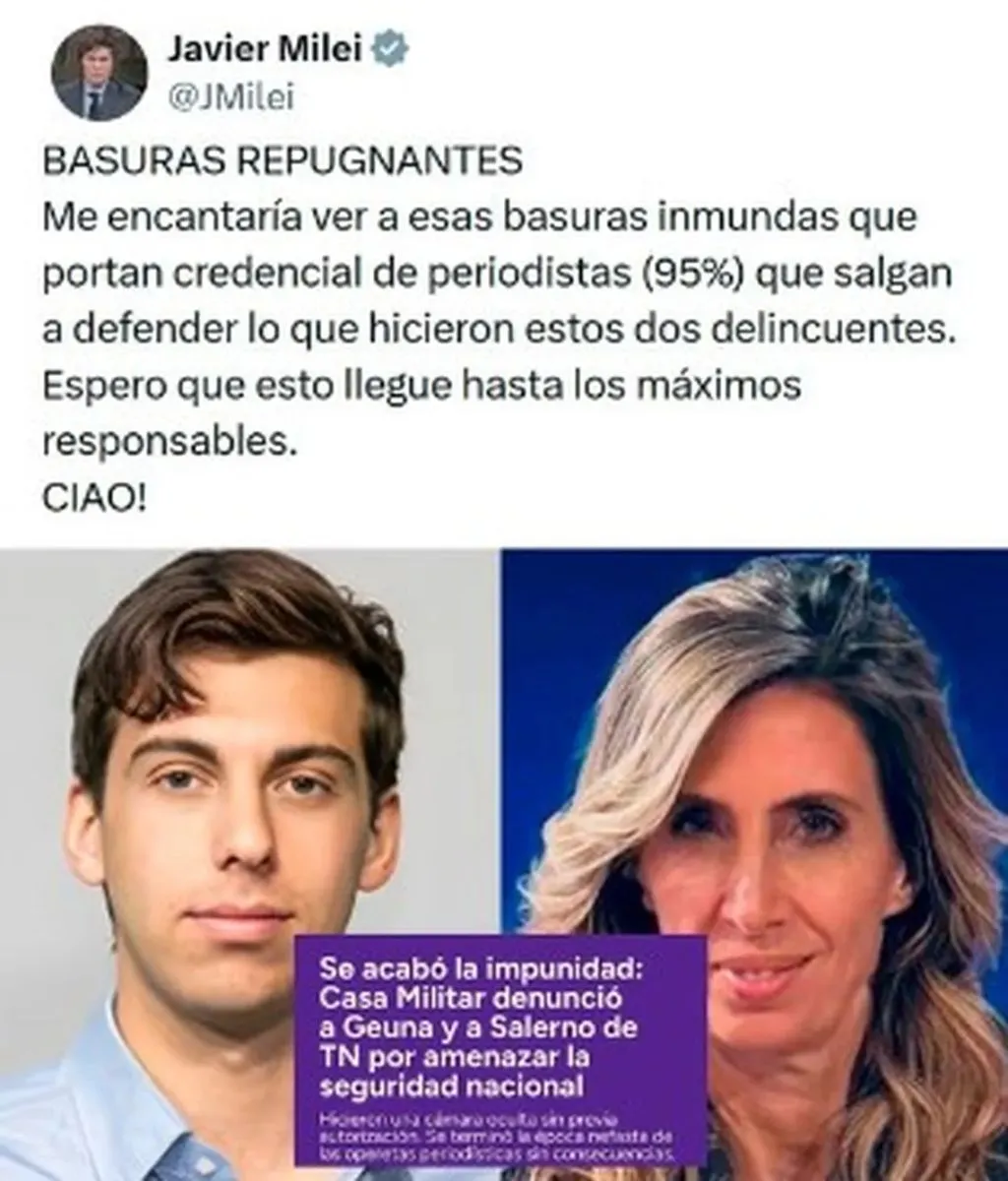 La decisión de interrumpir el acceso a la prensa ha sido además corroborada por el presidente Milei a través de redes sociales, donde retuiteó insultos hacia los periodistas. Paralelamente a estos acontecimientos, se desencadenó una denuncia legal por parte de la Casa Militar.