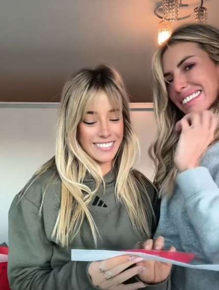 La escena empezó con una puesta en escena llamativa. Zoe Bogach abrió primero una campera de cuero y después encontró un sobre diseñado como si fuera un pasaje de avión, con la inscripción “Mamá Airlines”. La idea buscaba presentar el regalo de una manera original, pero lo que vino después fue lo que encendió todos los comentarios.