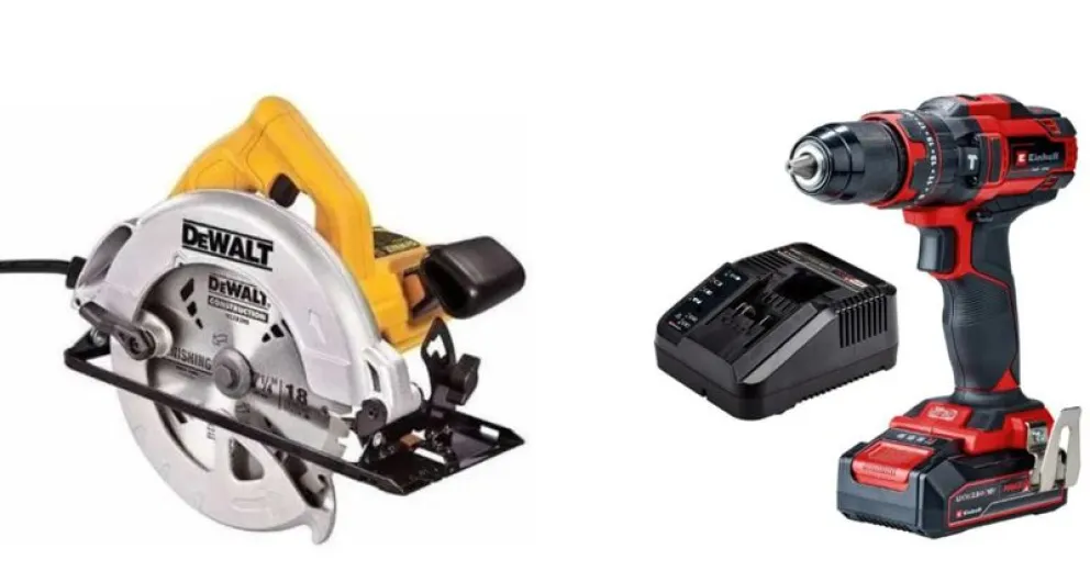 Una sierra circular Dewalt, de color amarillo