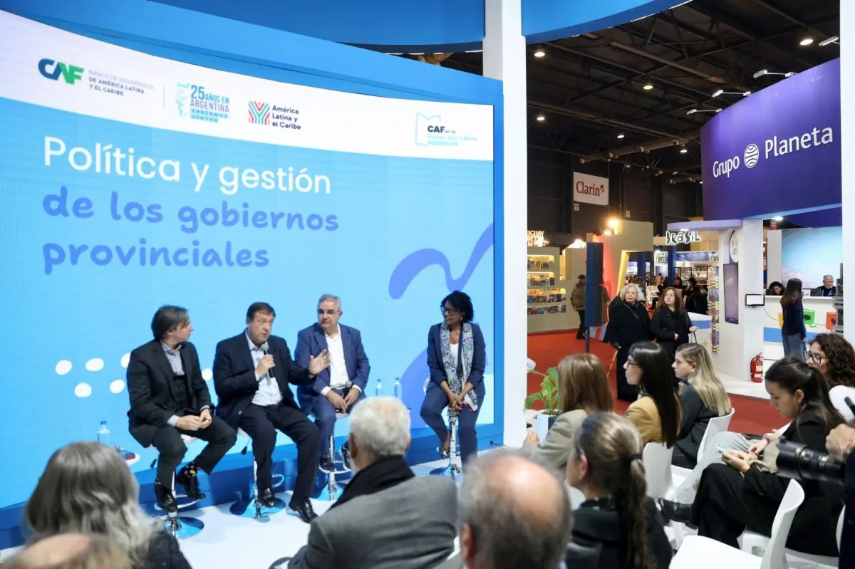 El gobernador de Río Negro, Alberto Weretilneck, en el marco de la Feria Internacional del Libro de Buenos Aires, fue parte de un encuentro de CAFBanco de Desarrollo de América Latina y el Caribe— sobre financiamiento territorial y políticas públicas, actividad de la que también participó su par de Catamarca, Raúl Jalil.